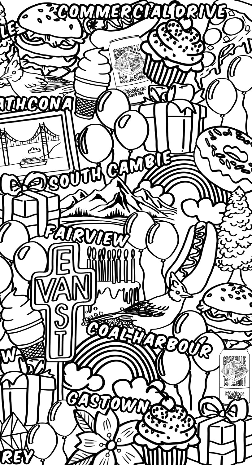 Kick back to your childhood and include a custom giant colouring book style mural for your next event! I'll help you design all your favourite things in a life-size banner for you and your attendees to colour in.