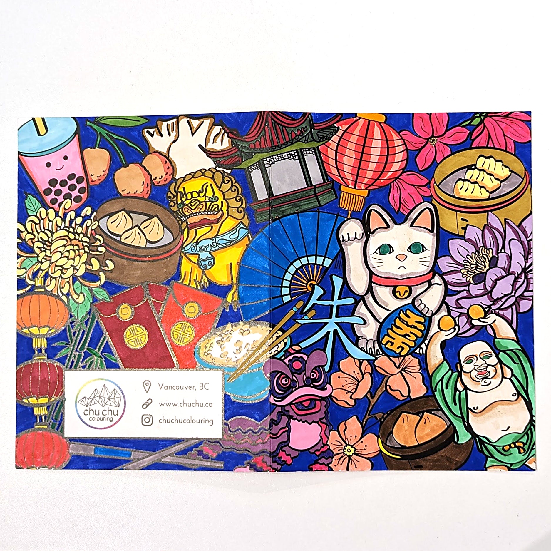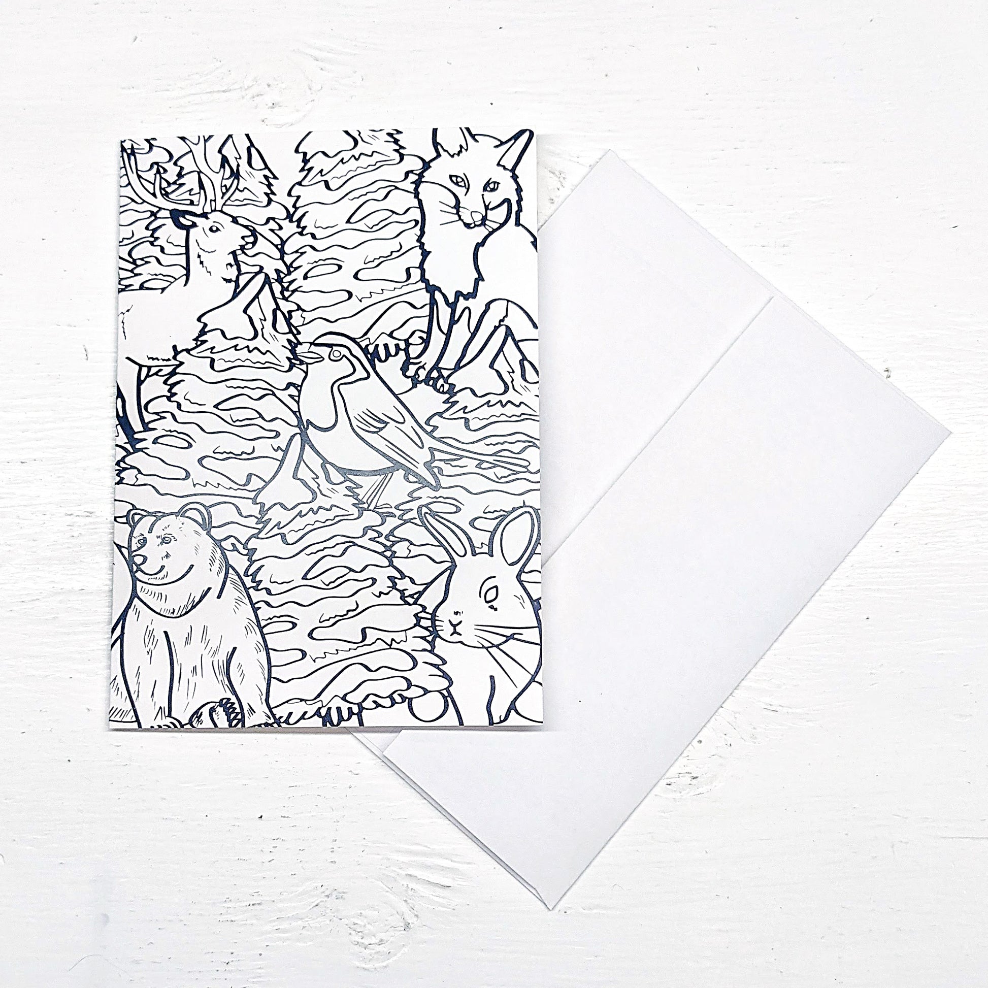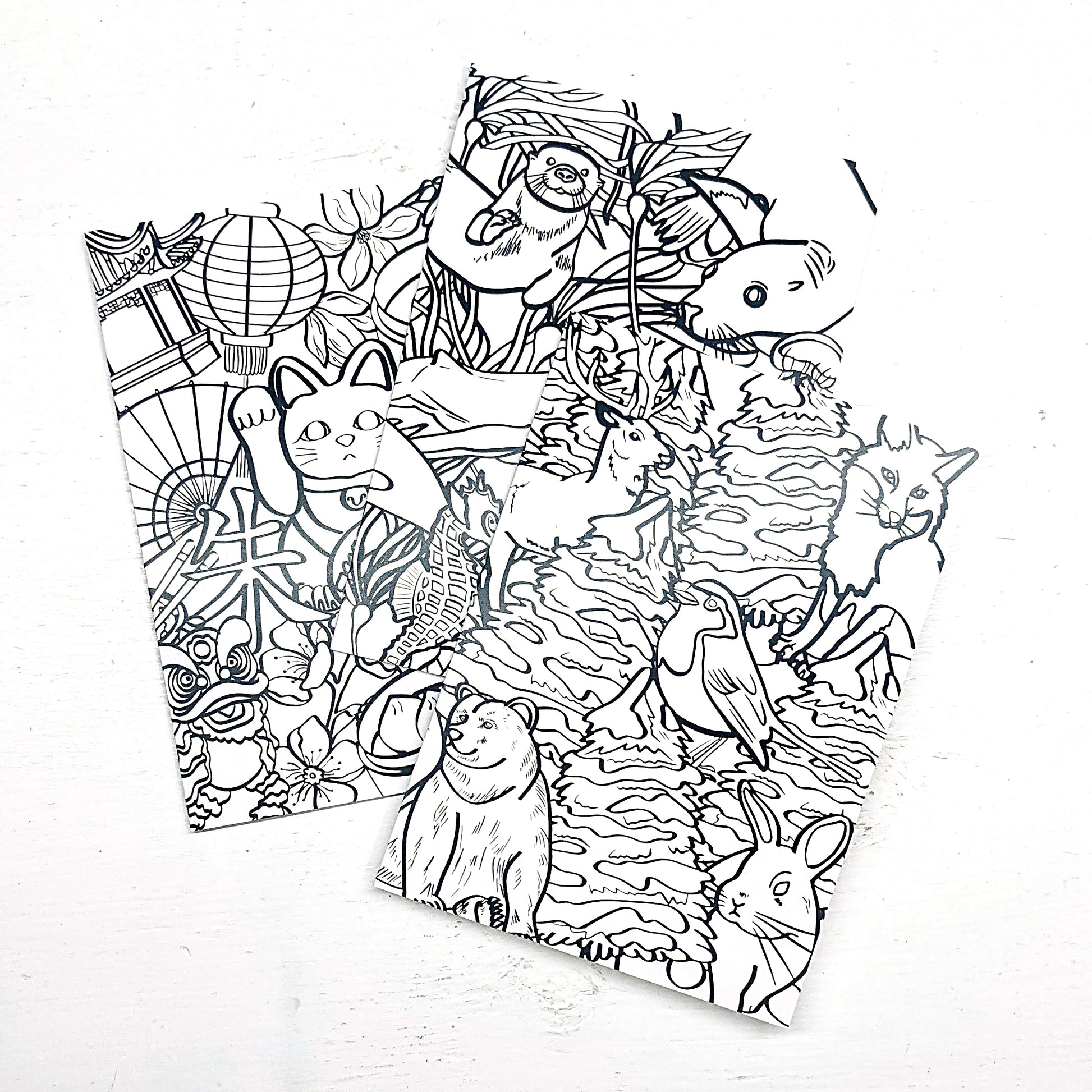 Original drawings by Serena Chu on 5x7 art greeting cards. Give them as is or colour them in to customize!